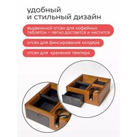 Одной из ключевых особенностей нок-бокса RISE является его мультифункциональность. Он не только служит контейнером для кофейных отходов, но и включает специальные емкости для хранения холдера и темпера. Это позволяет вам всегда иметь под рукой необходимые аксессуары для приготовления кофе.