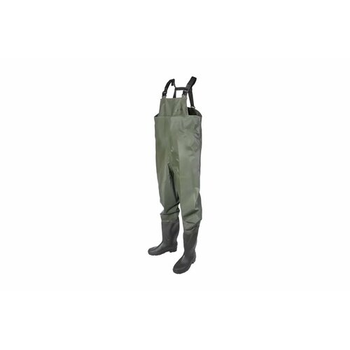 Забродный полукомбинезон: водонепроницаемый, легкий и прочный. Изготовлен из материала ПВХ высокого качества. Минимальное количество швов, удобный крой, идеальный баланс между прочностью, комфортом и водонепроницаемостью. Сапоги изготовлены из материала ПВХ. Штаны вейдерсов герметично соединены с сапогами при помощи сварки. Подошва сапог толстая и гибкая резина, не ломающаяся, с глубоким четким протектором и технологией антискольжения. Полукомбинезон предназначен для охоты, рыбалки, катания на квадроциклах, защищает от грязи и воды.