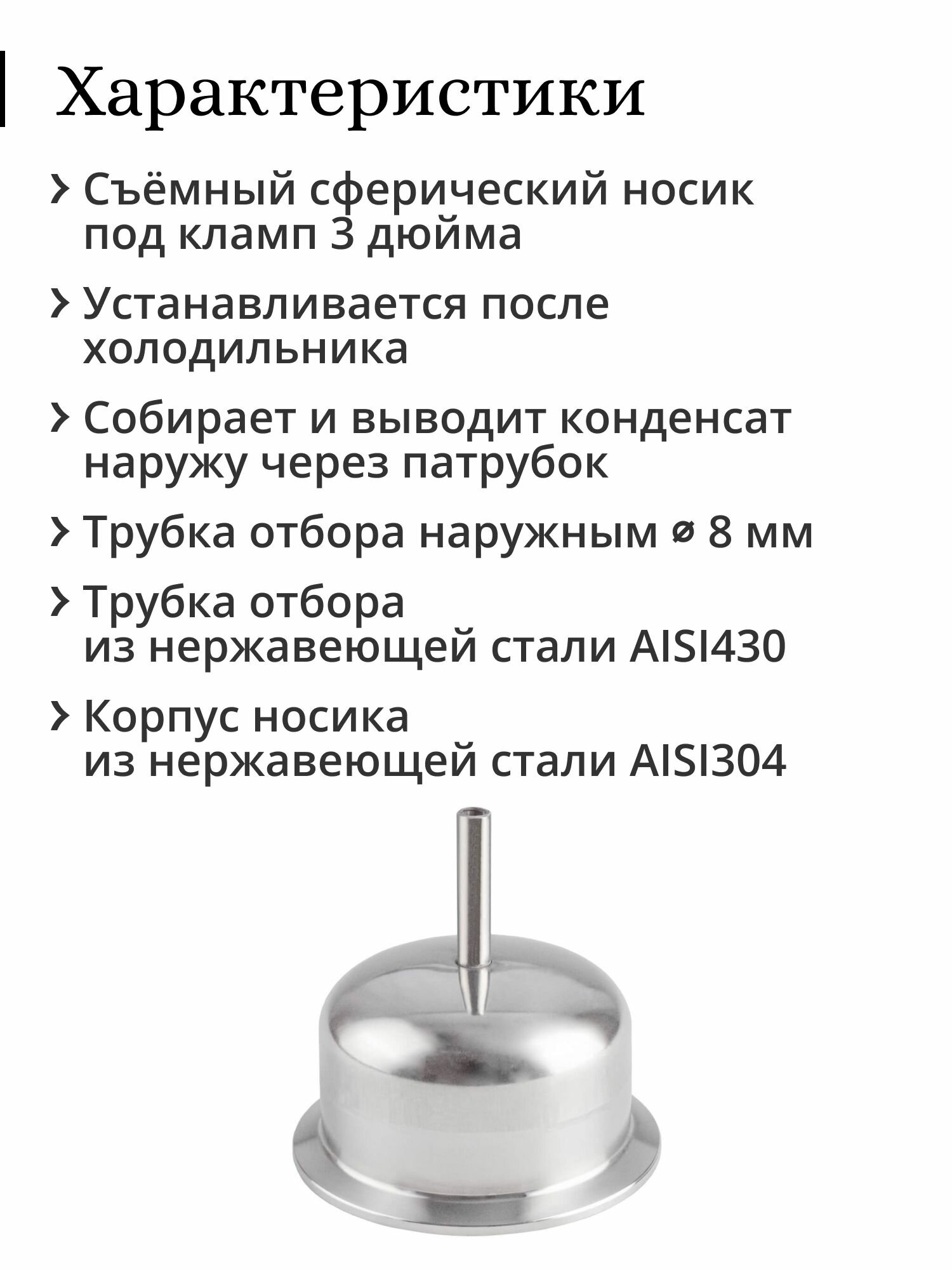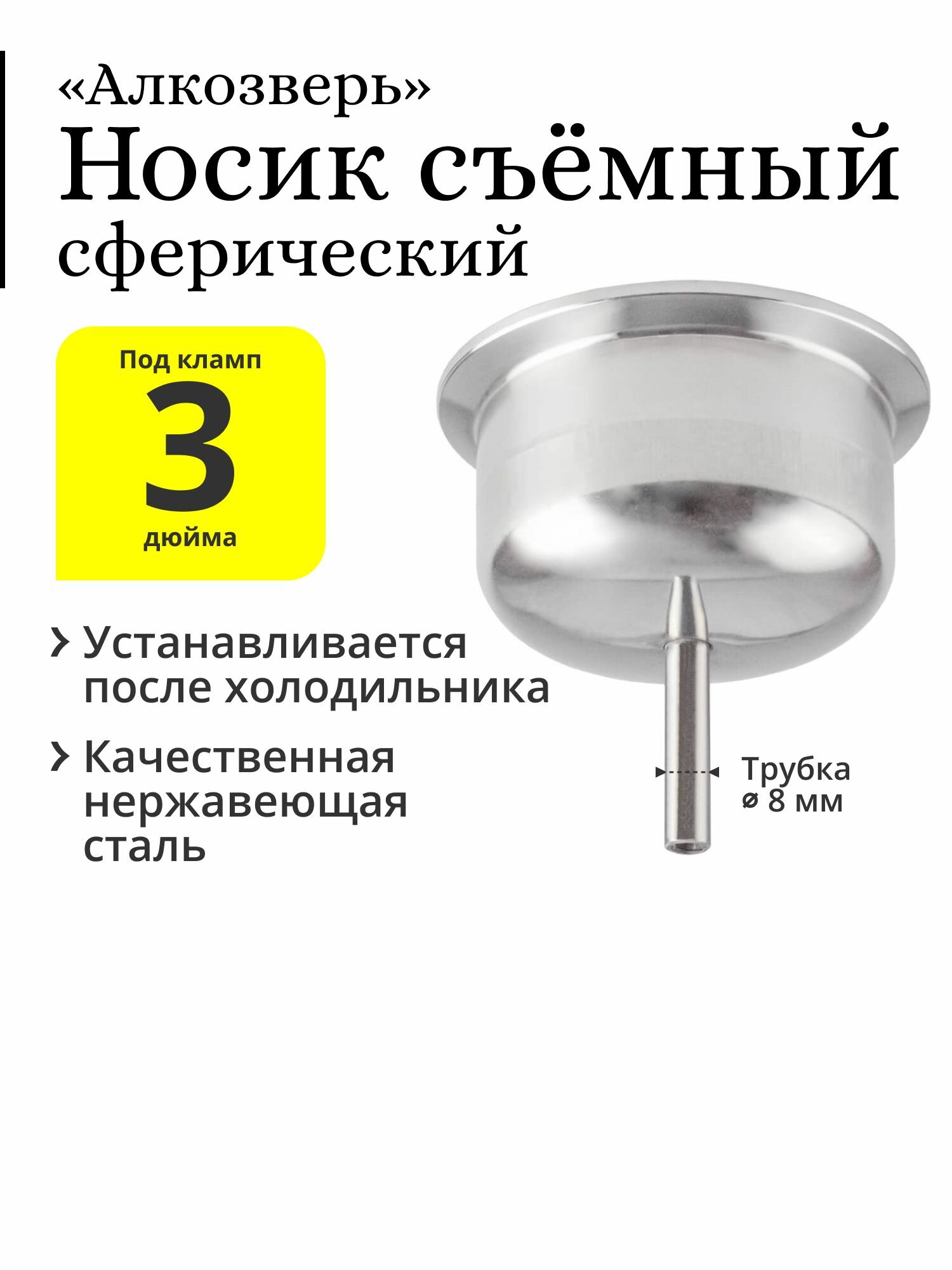 Носик съёмный, без ТСА, сферический «Алкозверь», под кламп 3 дюйма, трубка отбора 8 мм: сравнение цен, характеристики, фото, актуальное наличие и цены.