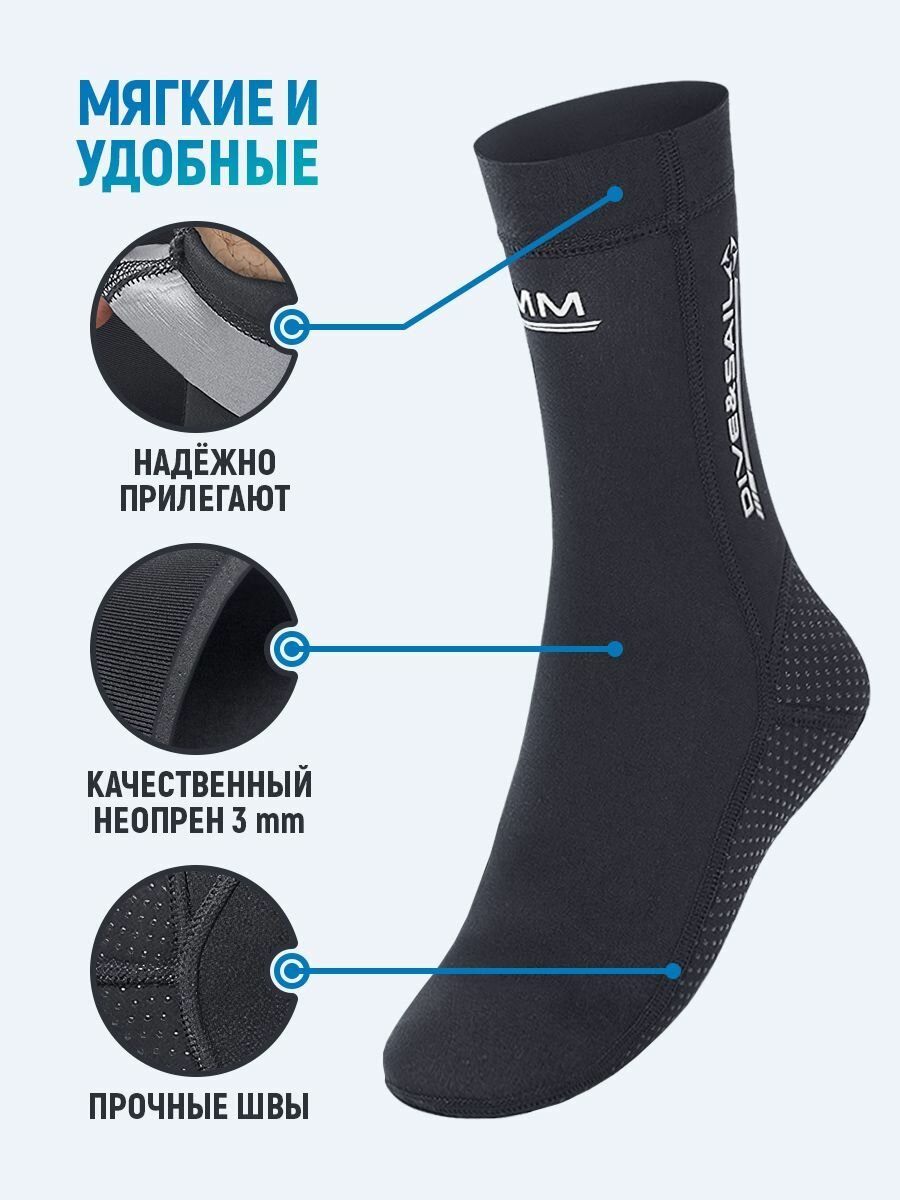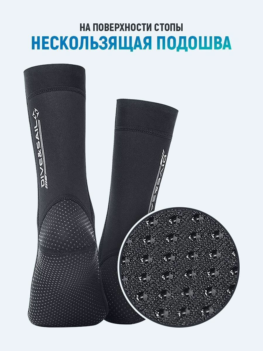 Неопреновые гидроноски мужские и женские DIVE & SAIL — это незаменимое дополнение к вашему гидрокостюму. Носки для дайвинга, подводной охоты и зимней рыбалки изготовлены из высококачественного быстросохнущего материала 90% неопрен толщиной 3 мм + 10% нейлон. Это дополнительное к гидрокостюму утепление позволит вам находиться в более холодной воде при таком же уровне комфорта.