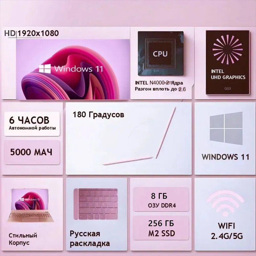 Купить Ноутбук 14″, Intel Celeron N4000, RAM 8 ГБ, SSD 512ГБ, Windows Pro, Розовая клавиатура. Русская раскладка с доставкой по всей России.
