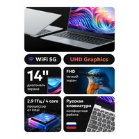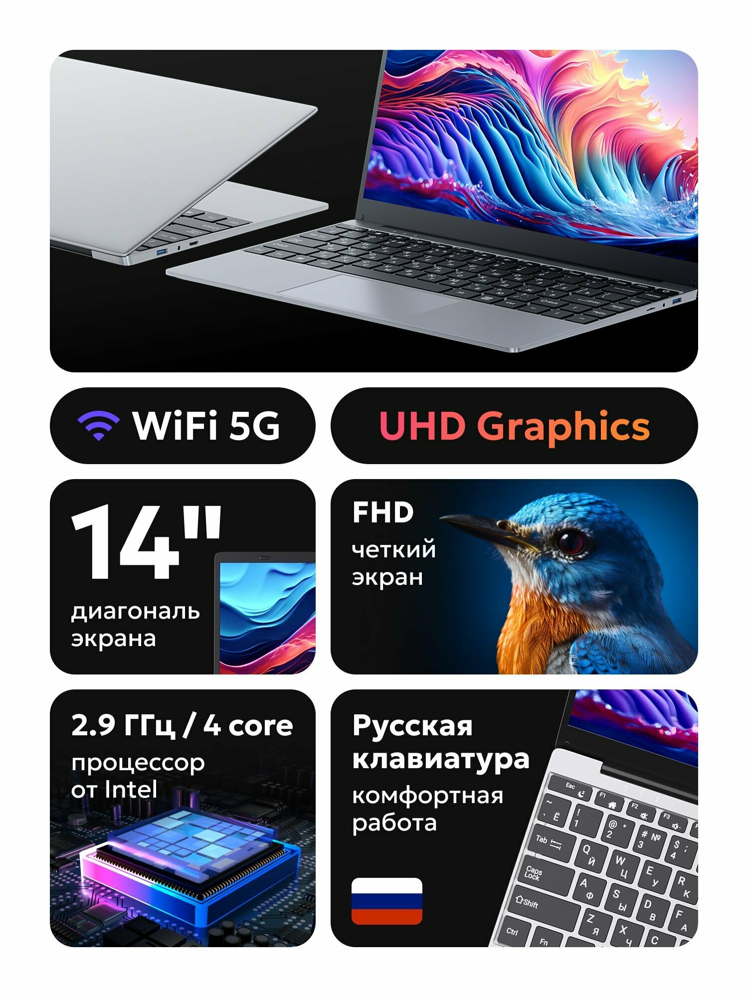 Купить Ноутбук 14″, Intel Celeron N4000, RAM 8ГБ, SSD 128 ГБ, Windows Pro, серебристый, Русская раскладка с доставкой по всей России.