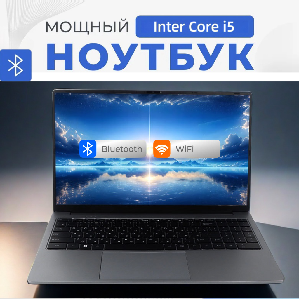 Купить Ноутбук, 14″ Intel Core i5, 16GB RAM, SSD 512GB, Windows 11, Русская раскладка серый с доставкой по всей России.