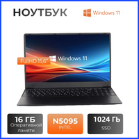 Ноутбук 15.6 для учебы и бизнеса, Intel Celeron N 5095ЧёрныйRAM 16 ГБ, SSD 1024 ГБ, Intel UHD Graphics, Windows 11, , Русская раскладка IPS Full HD 1920×1080