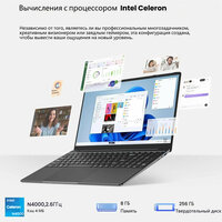 Ноутбук 15,6″ (Intel Celeron N4000 / 8 ГБ ОЗУ / 256 ГБ SSD), Windows 11 Pro, двухдиапазонный Wi-Fi, веб-камера (ЧЁРНЫЙ).