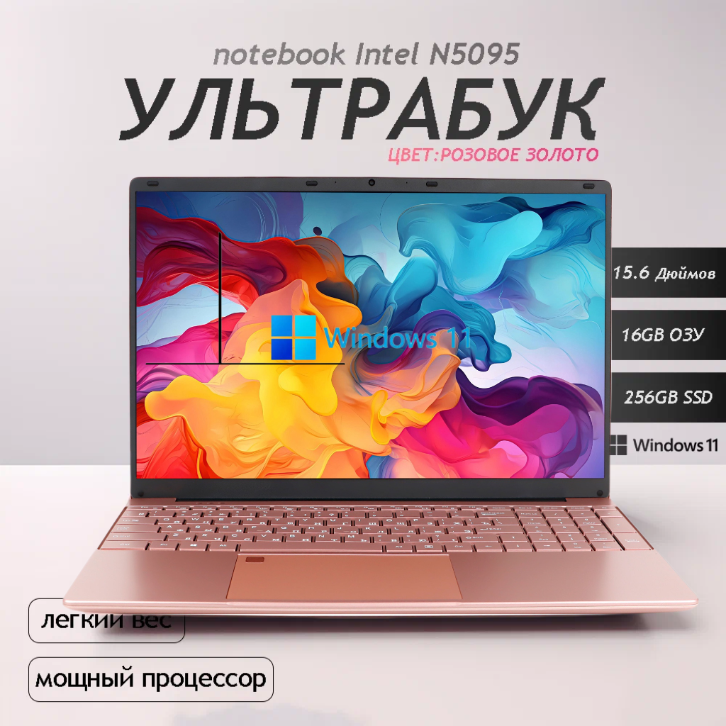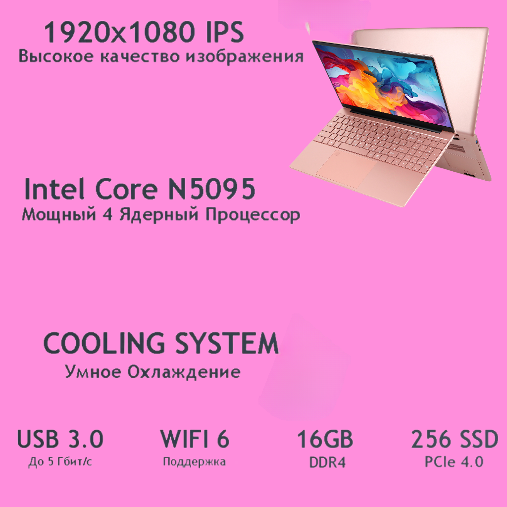Ноутбук 15.6″, Intel Celeron N5095 (2.9 ГГц), RAM 16 ГБ, SSD 256ГБ, Intel UHD Graphics, Windows 11, Розовый, Русская раскладка Подарок для женщин.: сравнение цен, характеристики, фото, актуальное наличие и цены.