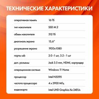 Ноутбук 15.6″, Intel Celeron N5095, RAM 16 ГБ, SSD 512 ГБ, Intel UHD Graphics Xe 24EUs, Windows Home, серый, Русская раскладка: сравнение цен, характеристики, фото, актуальное наличие и цены.