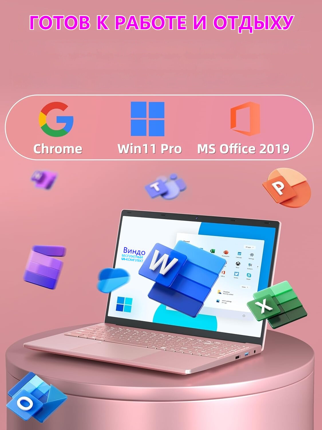 Купить Ноутбук 15.6″, Intel N95 (3.4 ГГц), RAM 16 ГБ, SSD 512 ГБ, Intel UHD Graphics, Windows 11 Pro, Розовый подарок, Русская раскладка с доставкой по всей России.