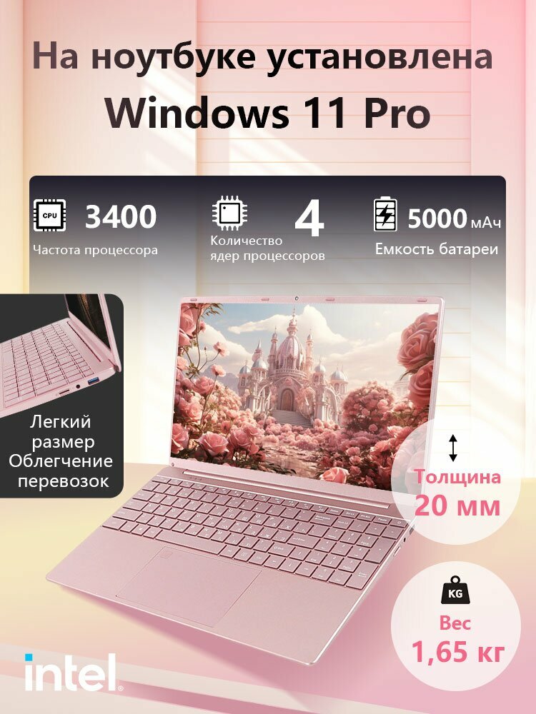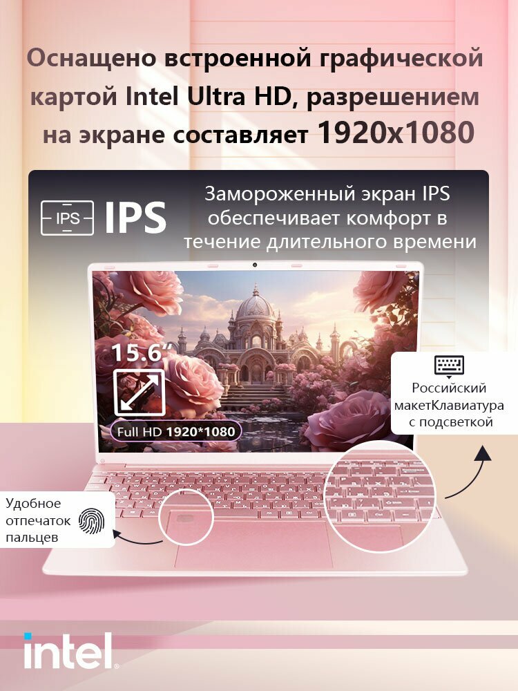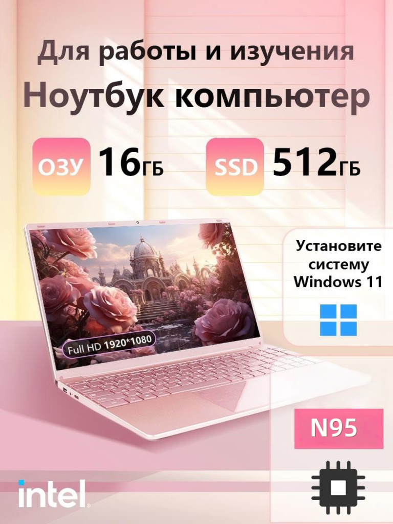Ноутбук , INTEL N95 15.6″, 16ГБ, SSD512 ГБ , Win11, подсветка клавиатуры , русская раскладка Розовое золото: сравнение цен, характеристики, фото, актуальное наличие и цены.