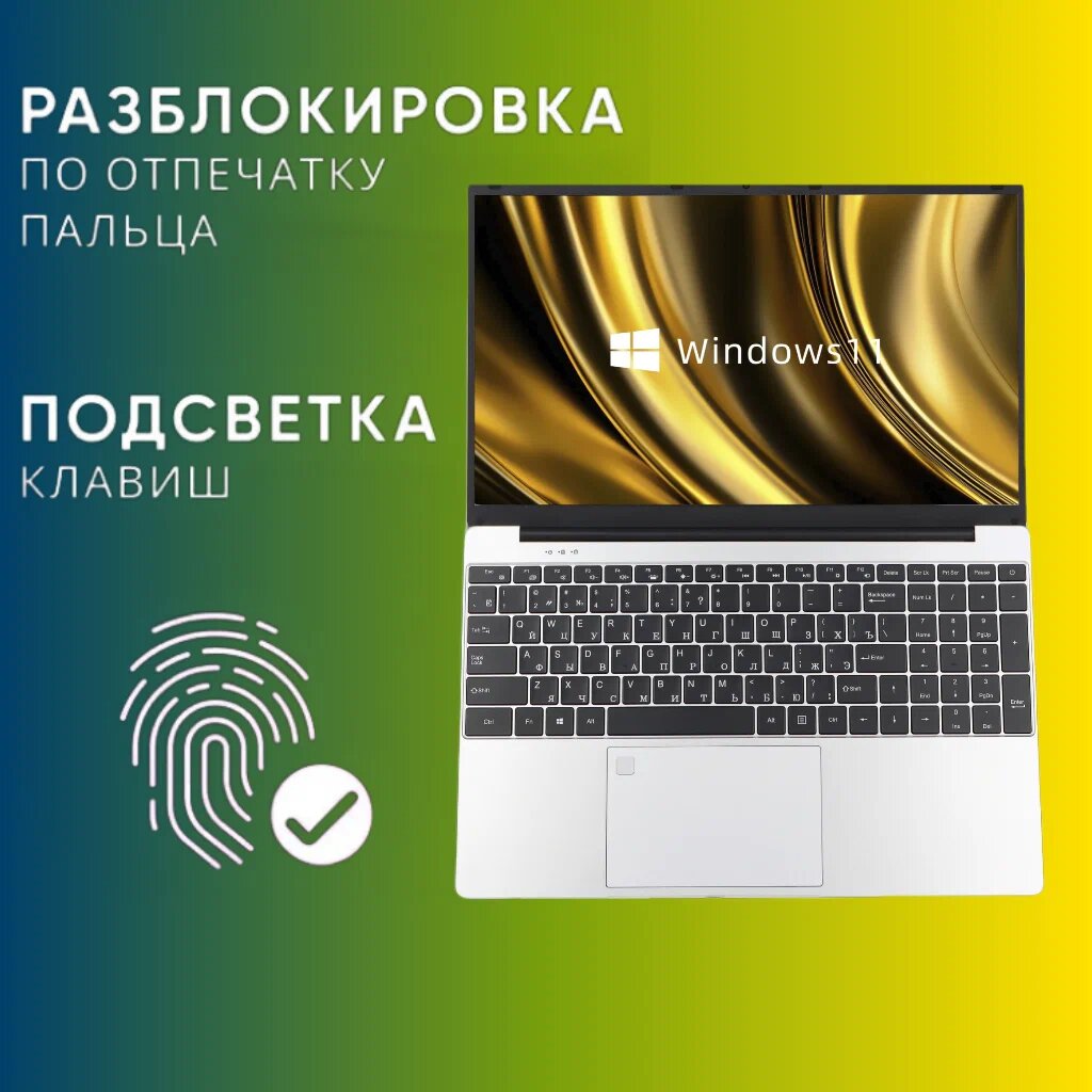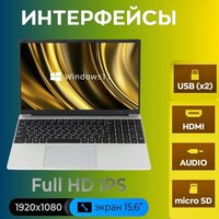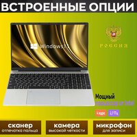 Ноутбук 15,6" с процессором Intel Celeron5095, 16 Гб ОЗУ, 512 Гб SSD, Windows 11 Серебро