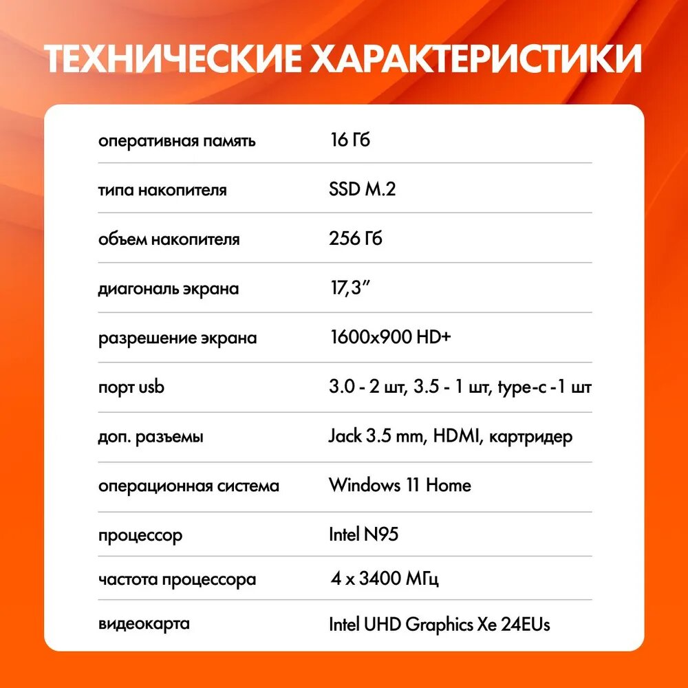 FlashBook Ноутбук 17.3″, Intel N95, RAM 16 ГБ, SSD 256 ГБ, Intel UHD Graphics Xe 24EUs, Windows Home, серый, Русская раскладка: сравнение цен, характеристики, фото, актуальное наличие и цены.