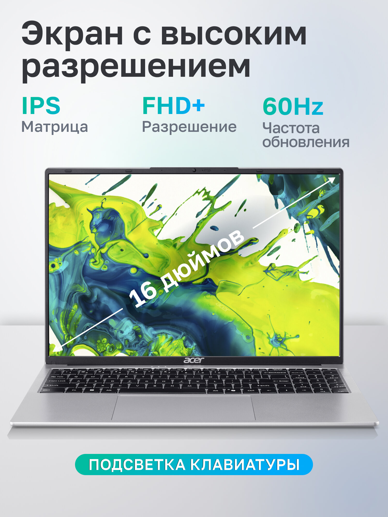 Ноутбук Acer Aspire Lite 16 AL16-54P-59ZA Intel Core 5 120U, 32ГБ, Intel Iris Xe Graphics, 16″ 1920×1200 60Гц IPS, noOS (NX. DJ8CD.001)