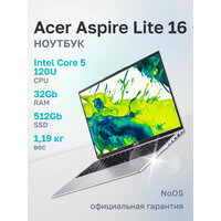 Ноутбук Acer Aspire Lite 16 AL16-54P-59ZA Intel Core 5 120U, 32ГБ, Intel Iris Xe Graphics, 16" 1920x1200 60Гц IPS, noOS (NX. DJ8CD.001)