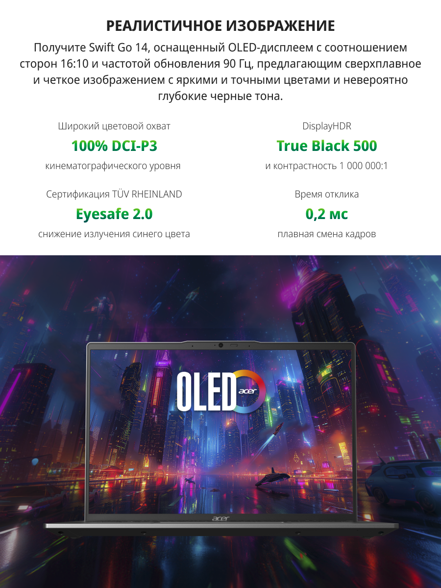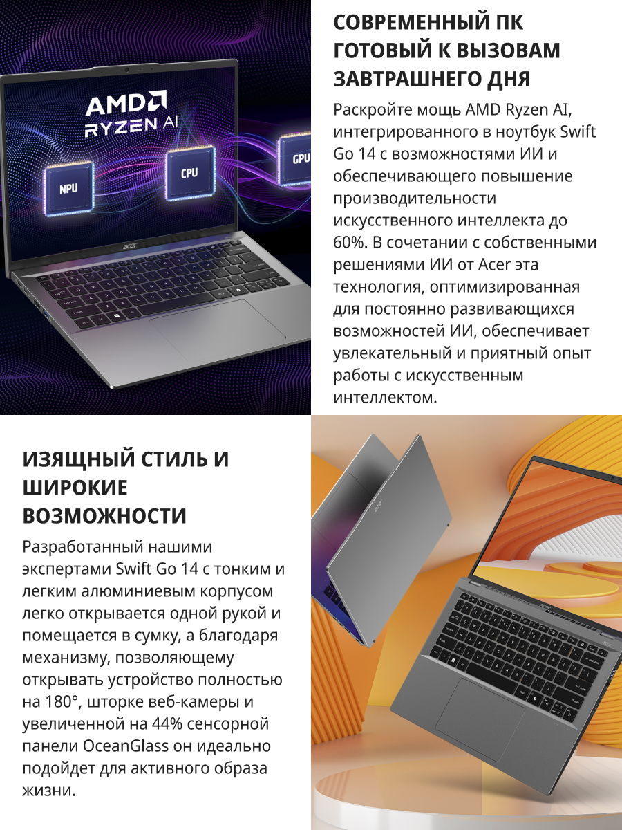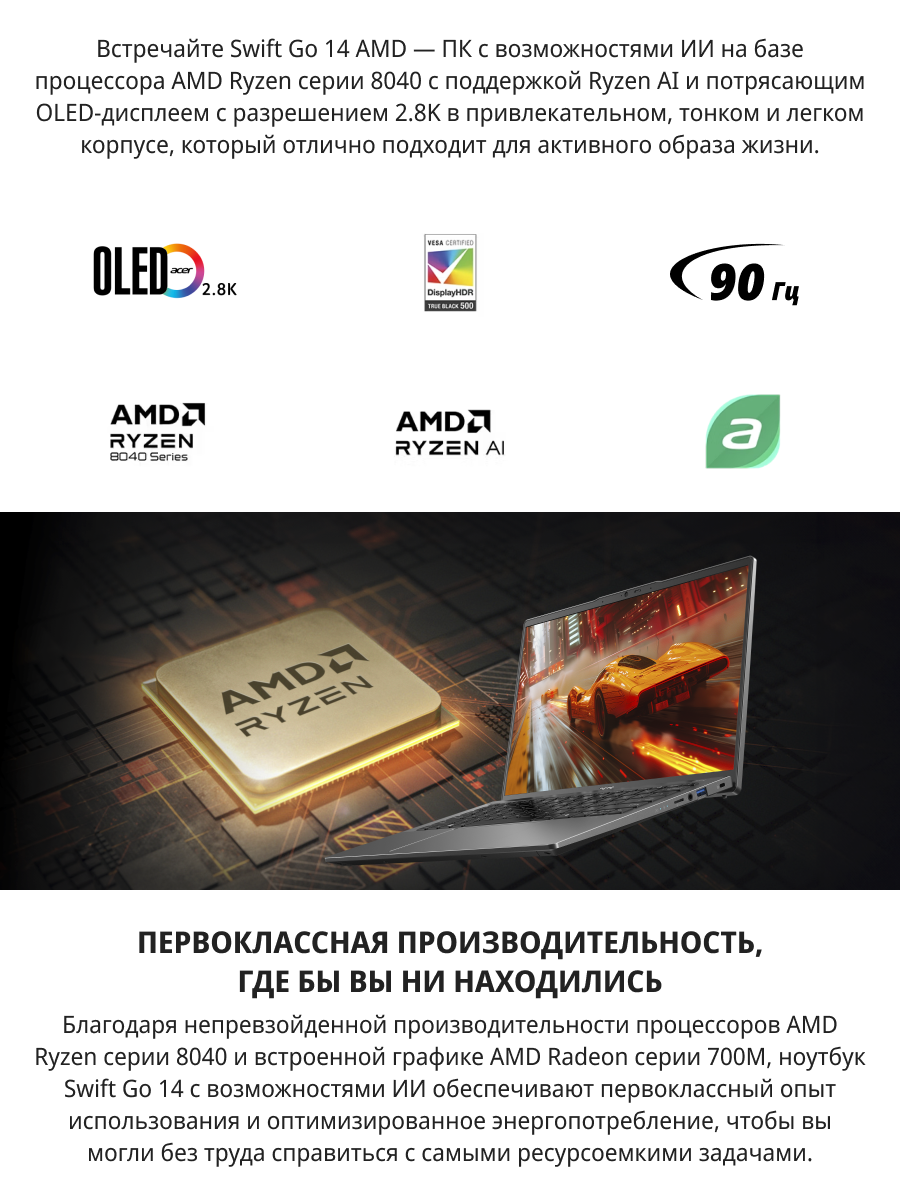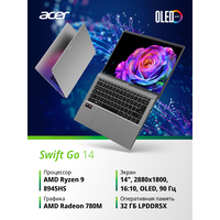 Купить Ноутбук Acer Swift Go 14 SFG14-63-R7T4 / 14″ OLED / AMD Ryzen 9 8945HS / 32 ГБ+1 ТБ / Windows 11 Home (NX. KTSCD.001) с доставкой по всей России.
