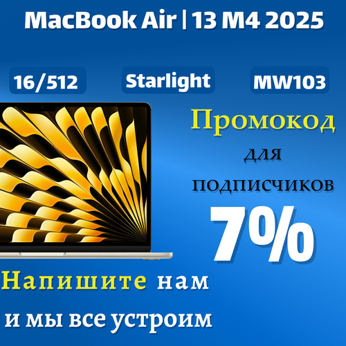 Купить Ноутбук Apple MacBook Air 13 2025 M4 16/512 Starlight, MW103 переходник в подарок с доставкой по всей России. Ноутбук Apple MacBook Air 13 2025 M4 16/512 Starlight, MW103 переходник в подарок: сравнение цен, характеристики, фото, актуальное наличие и цены.