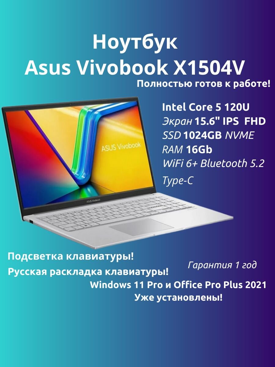 Купить Ноутбук ASUS Vivobook 15 X1504V (Core 5 120U/15.6″ FHD/16Gb/1024Gb/Windows11Pro&Office) Silver с доставкой по всей России.