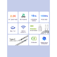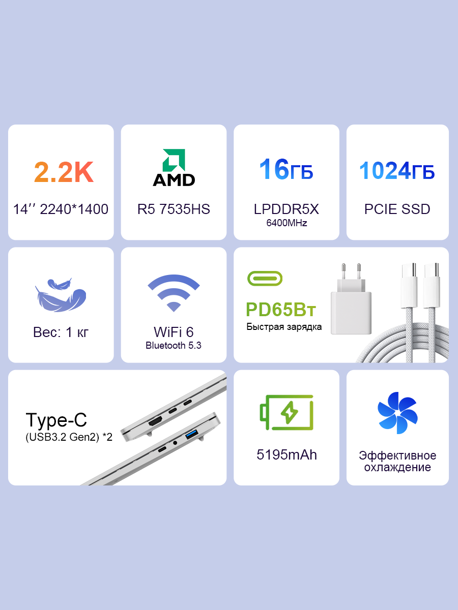 Купить Ноутбук Ninkear S14 14″ с Ryzen 5, 7535HS, 16 ГБ ОЗУ, NVME SSD 1 ТБ, LPDDR5, экран 2.2K(Сумка) с доставкой по всей России.