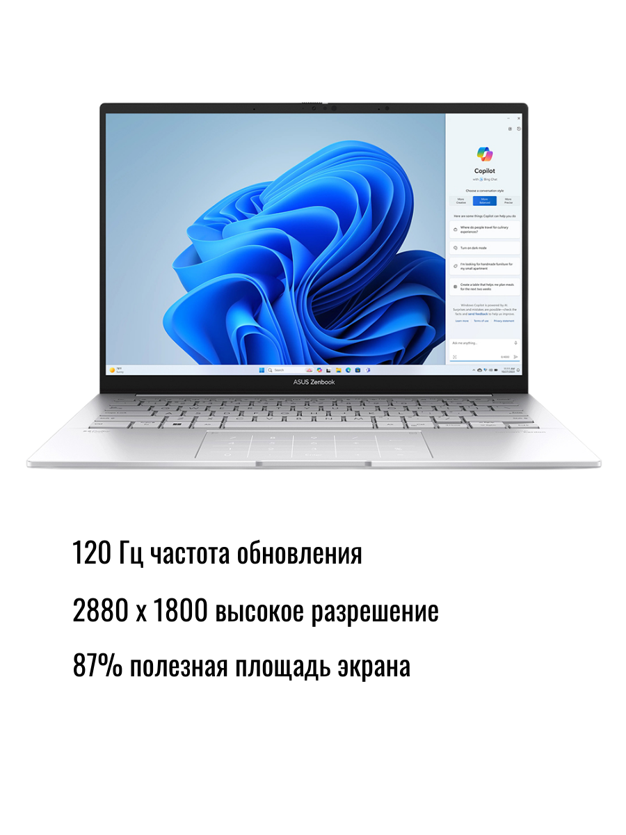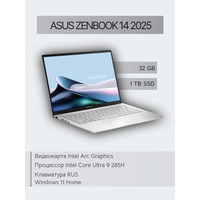 Купить Ноутбук Asus Zenbook 14 2025 2.8К, Intel Core Ultra 9 285H, RAM 32ГБ, SSD 1 ТБ UX3405C серебристый с доставкой по всей России.