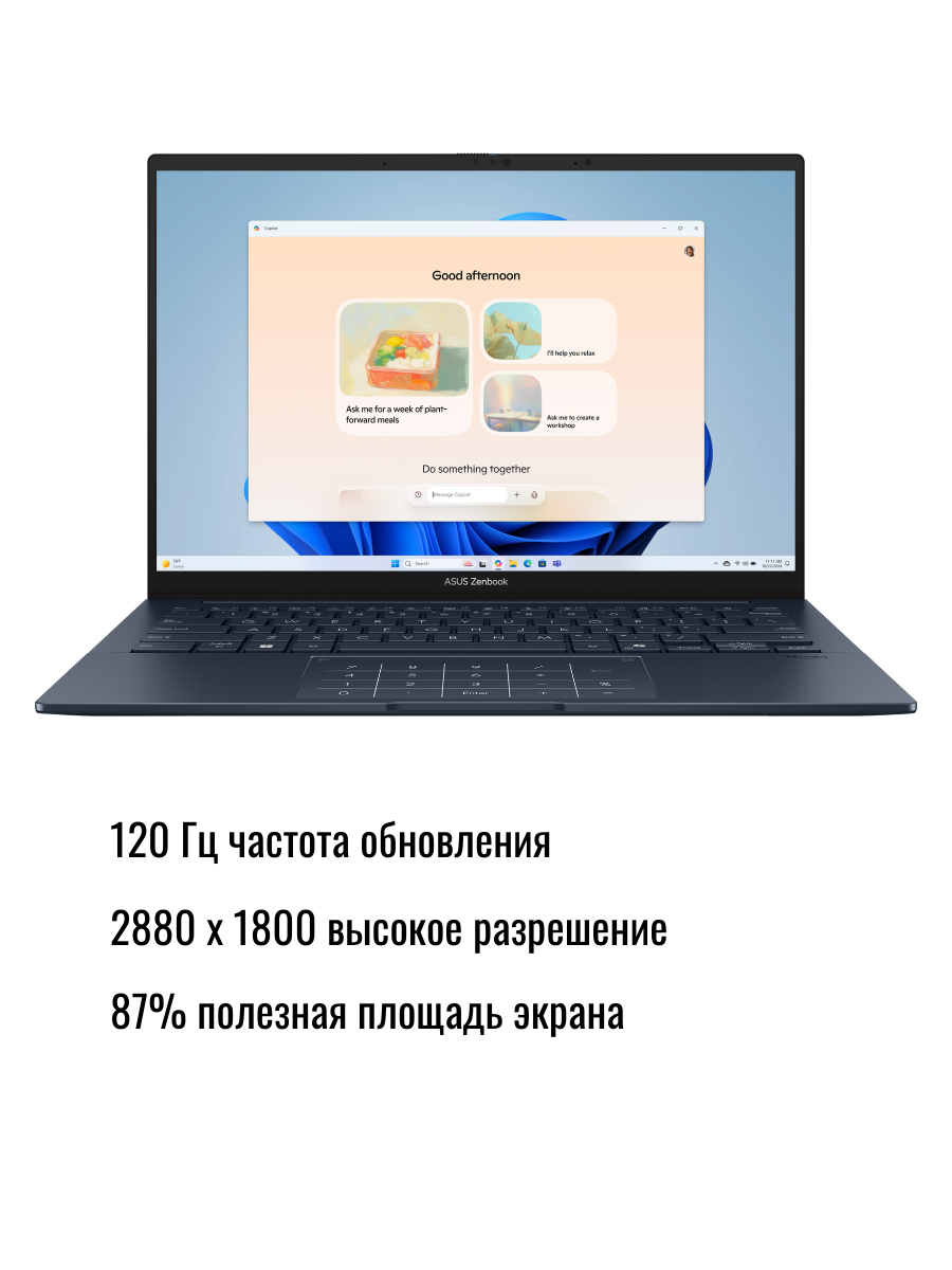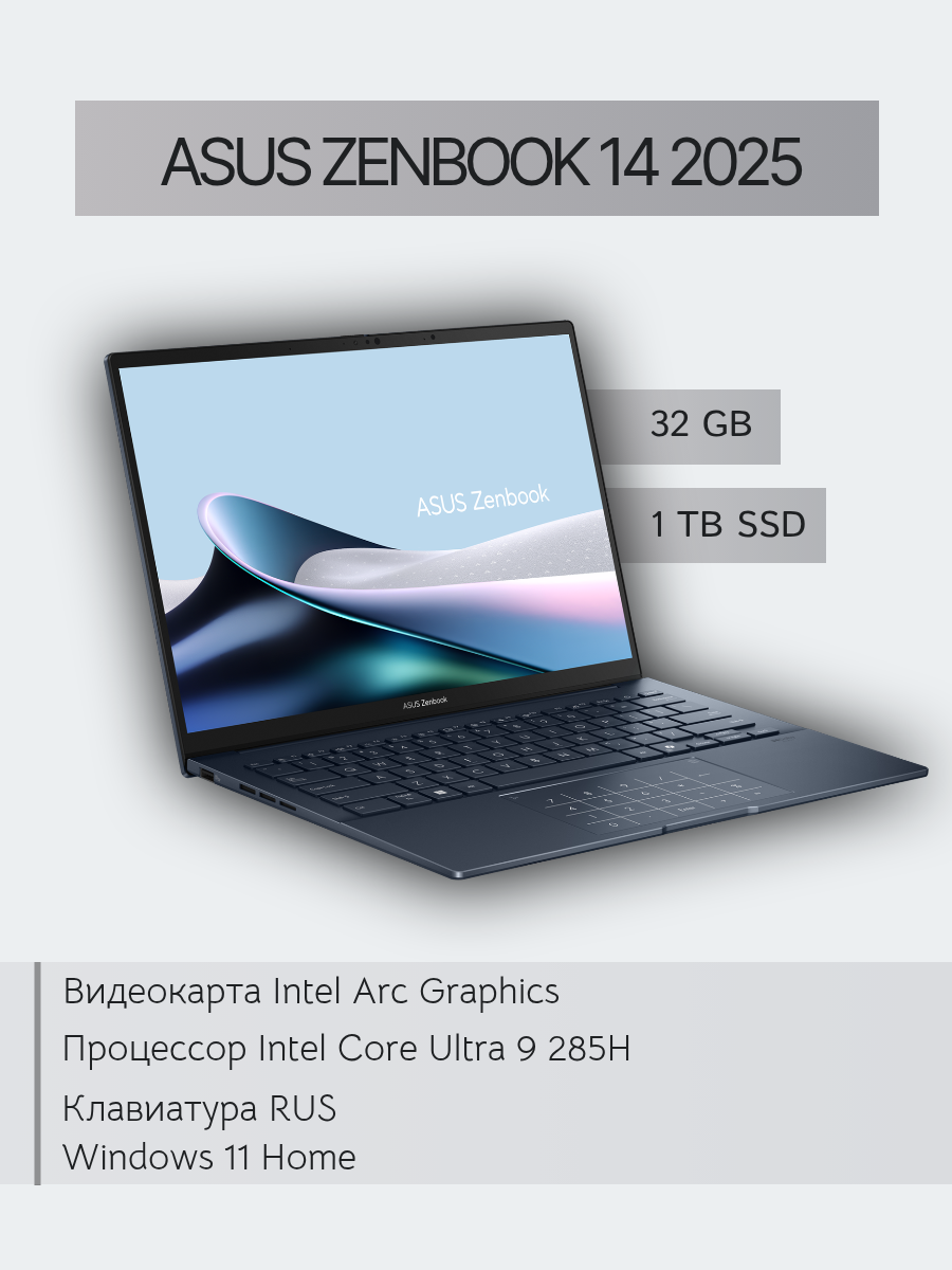 Купить Ноутбук ASUS Zenbook 14 UX3405C 2025, Intel Ultra 9 285H, 2.8K OLED, 32GB, 1TB, Windows 11, Синий, Русская раскладка с доставкой по всей России.