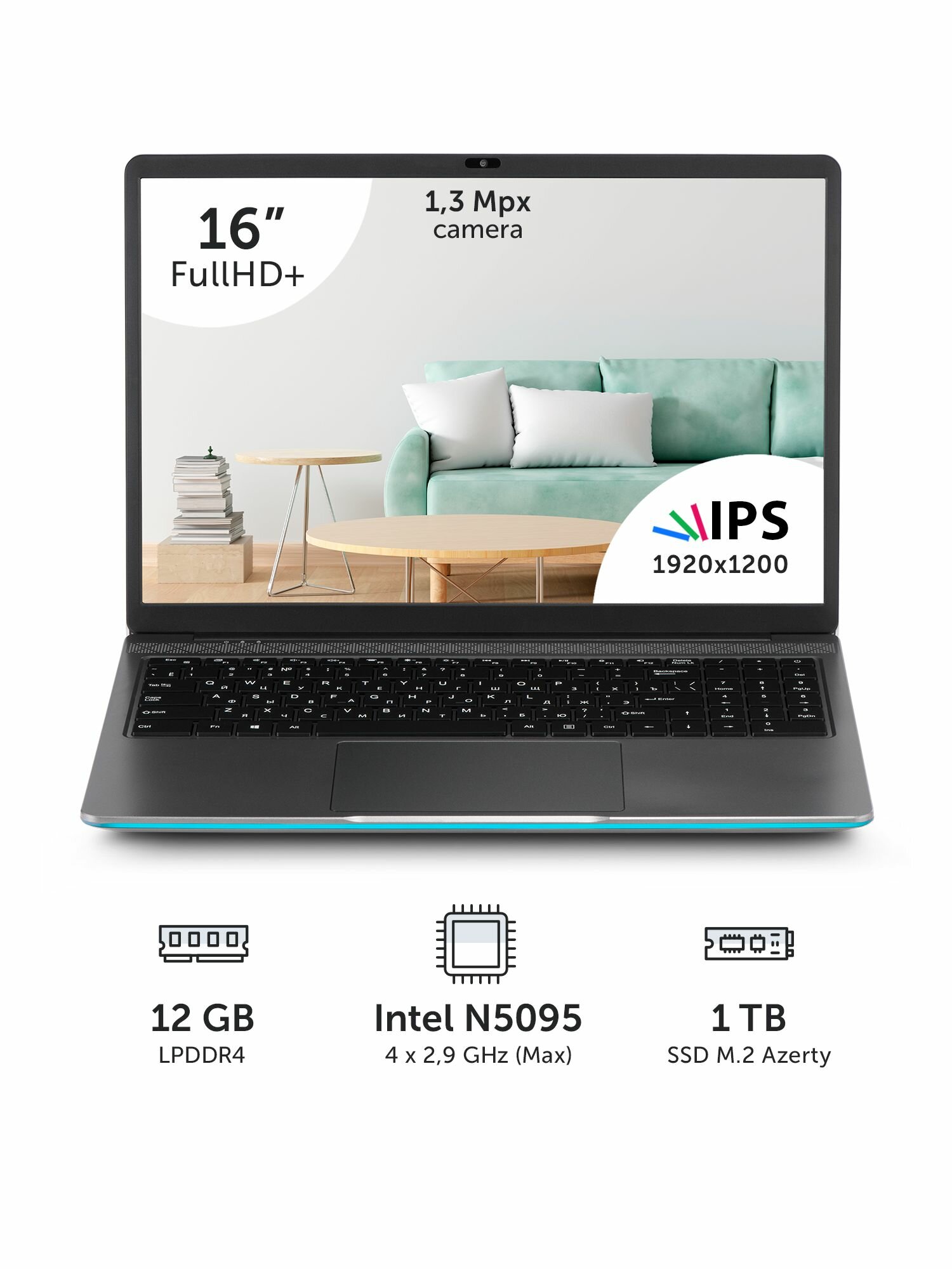 Ноутбук Azerty RB-1652 (16″ IPS 1920×1200 Intel N5095 4×2.0GHz, 12Gb LPDDR4, 1Tb SSD)