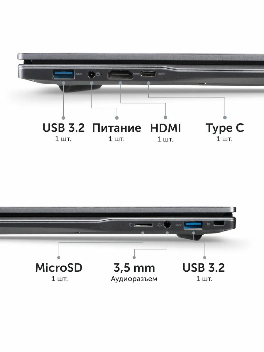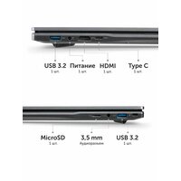В наличии имеется полный набор соединительных интерфейсов: USB 3.2, USB Type-C, HDMI, Wi-Fi, Bluetooth – для передачи данных и множества вариантов взаимодействия. В ноутбук встроены видеокамера со «шторкой» и микрофон.