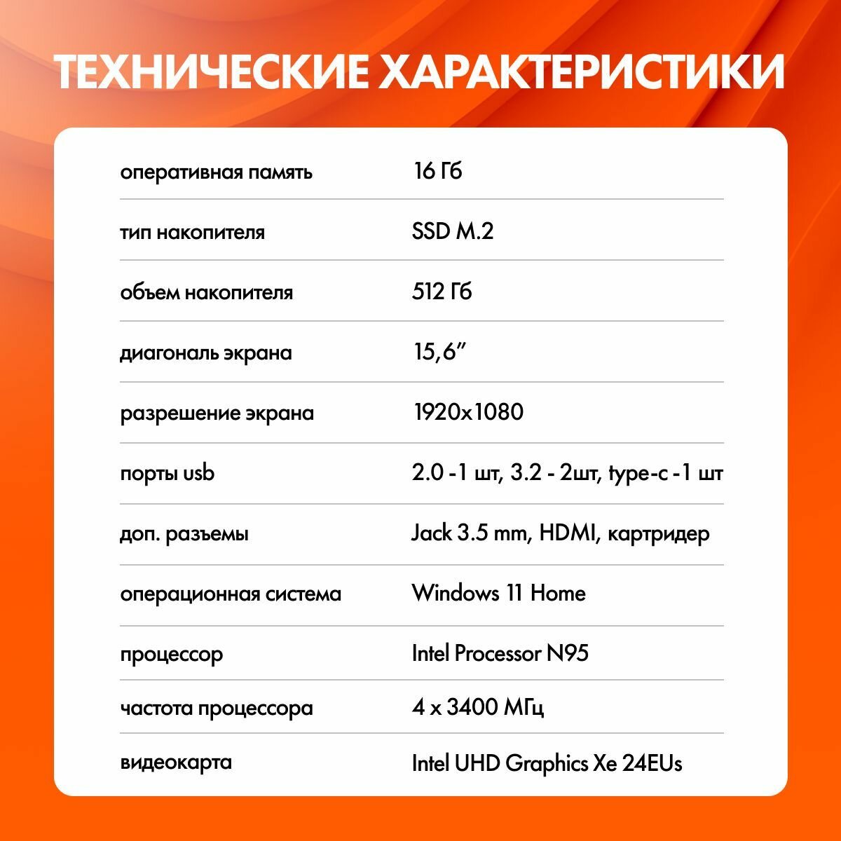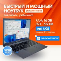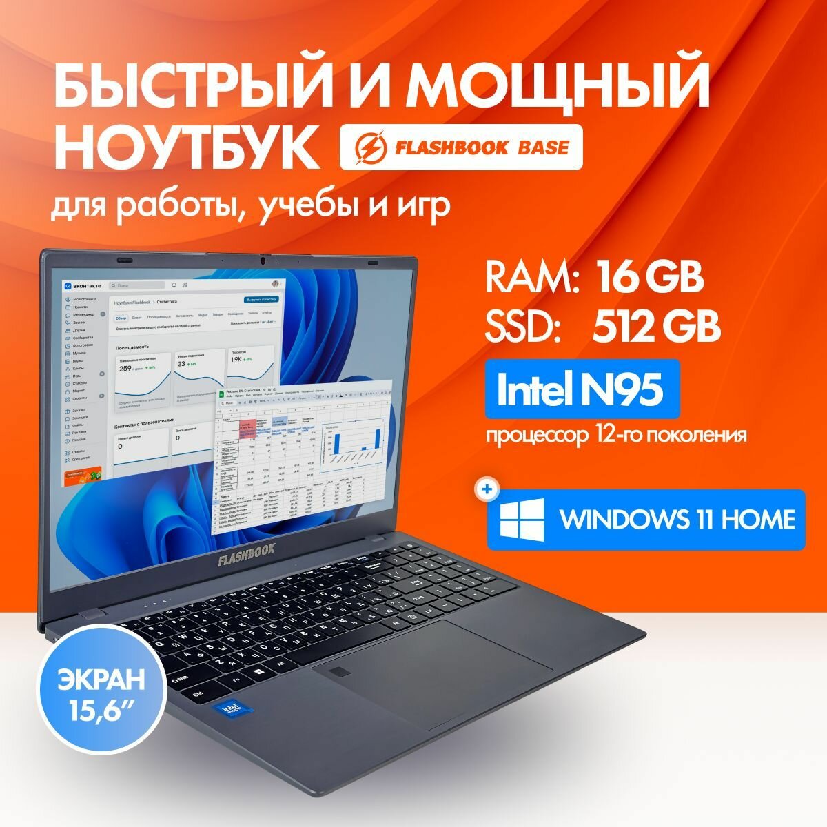 Купить Ноутбук для работы 15.6″ Flashbook Base, Intel N95, RAM DDR5 16 ГБ, SSD 512 ГБ, Intel UHD Graphics Xe с доставкой по всей России.