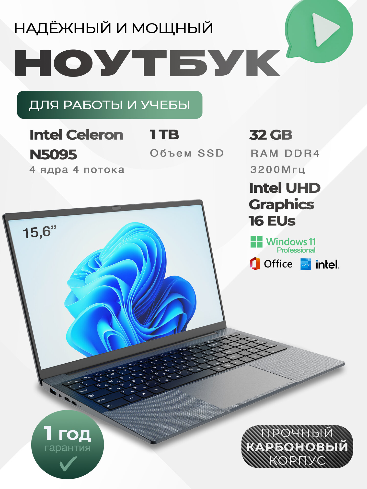 Ноутбук для работы и учебы 15.6″ DIVAO Carbon 1920×1080 IPS Intel Celeron N5095 32GB RAM SSD 1 TB Windows 11 Pro: сравнение цен, характеристики, фото, актуальное наличие и цены.