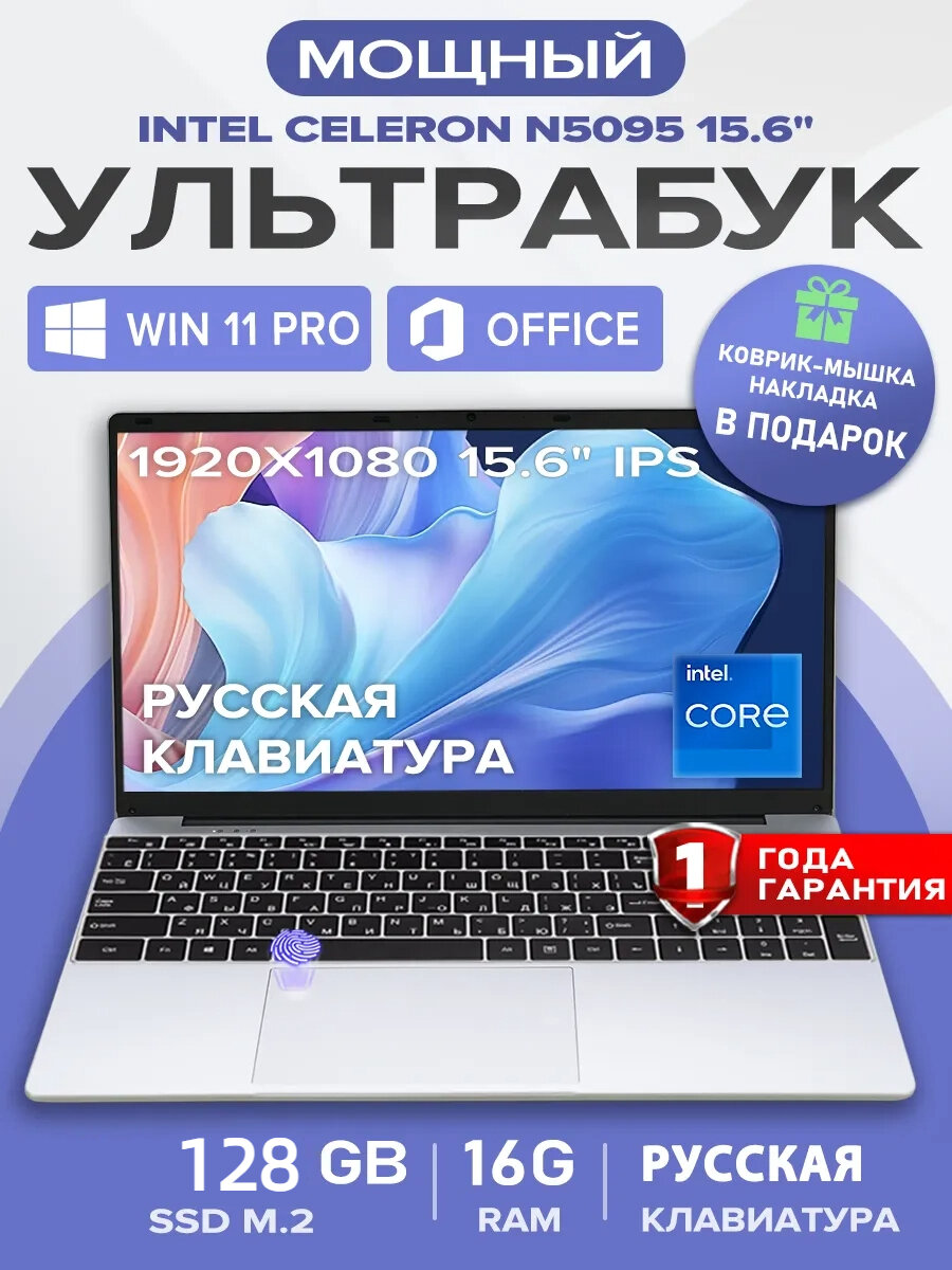 Купить Игровой ноутбук , Intel N5095, 15.6″, Windows 11, IPS, 16ГБ,128ГБ работы и учебы русская раскладка с доставкой по всей России.