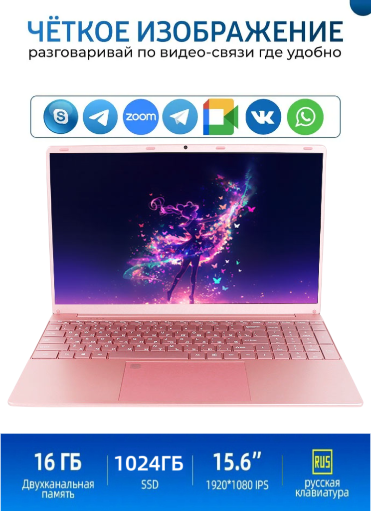 Купить Ноутбук для работы и учебы Intel Celeron N5095 , RAM 16 ГБ, SSD 1ТБ, s, Розово-золотой Русская раскладка с доставкой по всей России.