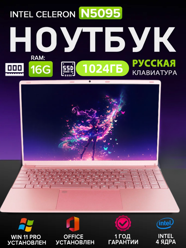 Ноутбук для работы и учебы Intel Celeron N5095 , RAM 16 ГБ, SSD 1ТБ, s, Розово-золотой Русская раскладка: сравнение цен, характеристики, фото, актуальное наличие и цены.