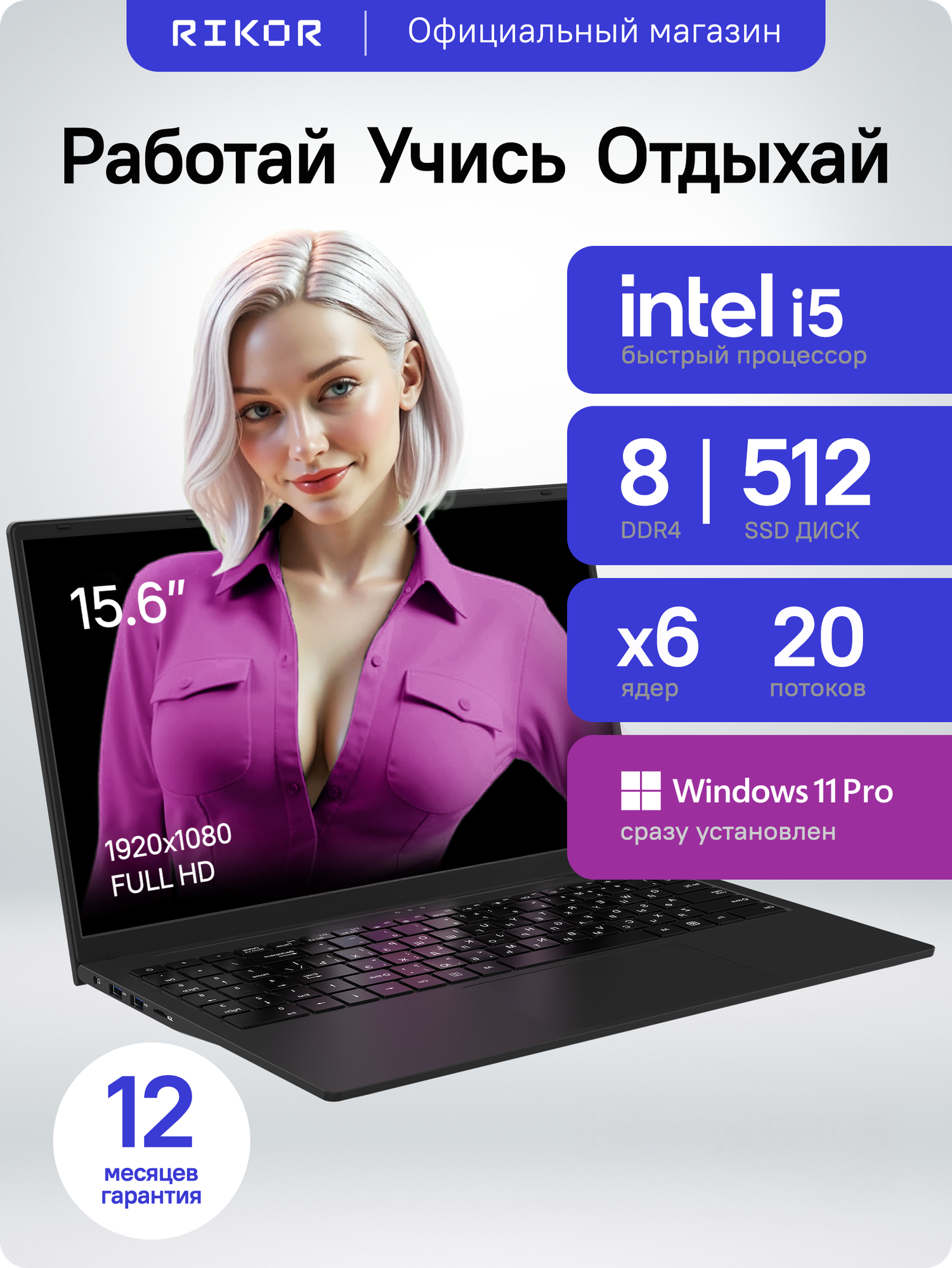 Купить Ноутбук для учебы и работы Rikor L5P 15 i5-1235U RAM 8 ГБ, SSD 512 ГБ, Windows Pro с доставкой по всей России. Ноутбук для учебы и работы Rikor L5P 15 i5-1235U RAM 8 ГБ, SSD 512 ГБ, Windows Pro: сравнение цен, характеристики, фото, актуальное наличие и цены.