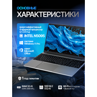 Купить Ноутбук для работы и учебы EXPEcomp NEO S15, Intel N5095 (до 2.9 GHz, 4 ядра), RAM 32 GB, SSD 512 GB, Windows 11 Pro с доставкой по всей России.
