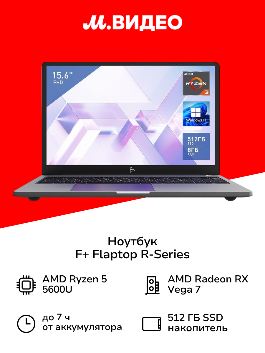 Купить Ноутбук F+ FLAPTOP R-Series/15.6″/AMD Ryzen 5 5600U/8/512/Win/Silver (FLTP-5R5-8512-W) с доставкой по всей России.