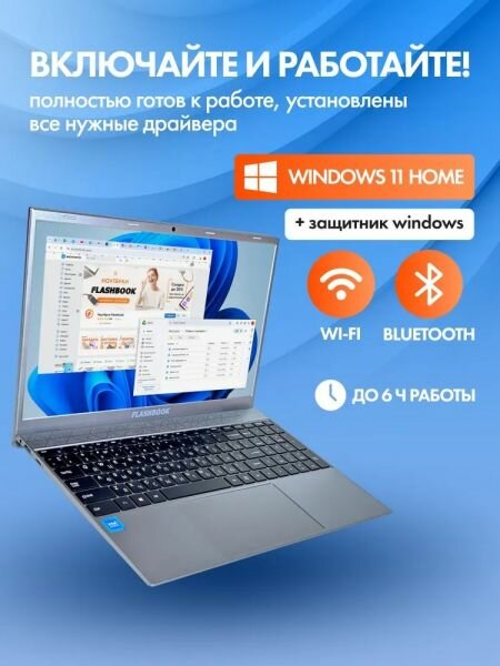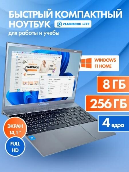 Купить Ноутбук FlashBook Lite (Intel Pentium J3710/14.1″/8GB/256GB SSD/UHD Graphics 405/Win11) Grey с доставкой по всей России.
