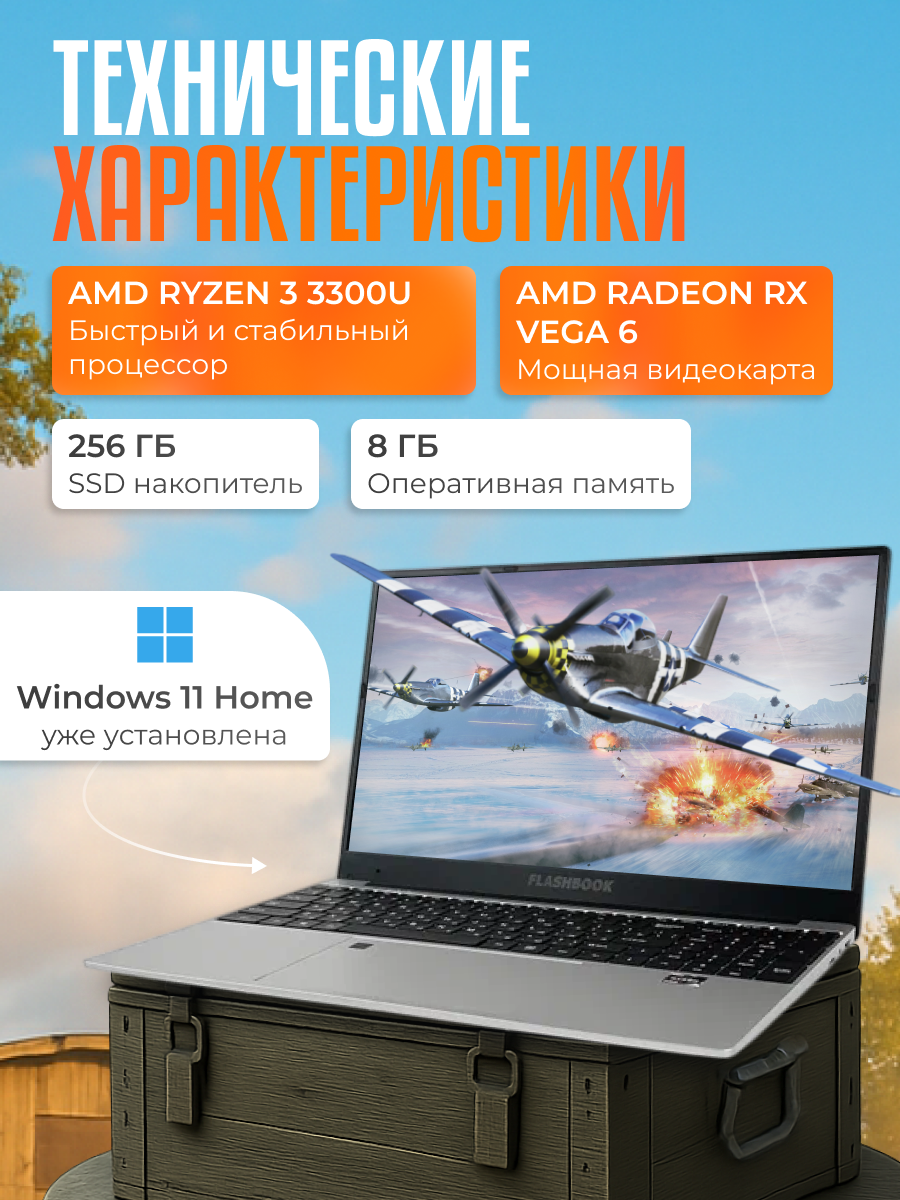 Купить Ноутбук FLASHBOOK Pro, Ryzen 3, Windows 11, 15,6″, 256ГБ SSD, FHD 15.6″ IPS с доставкой по всей России.