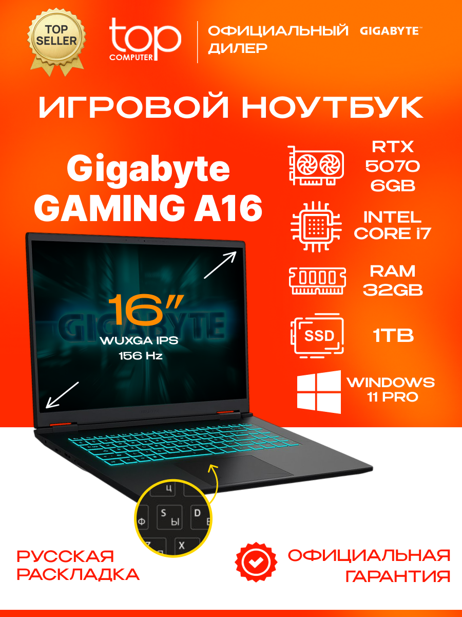 Купить Ноутбук Gigabyte Gaming A16 16″1920×1200; IPS;165Hz/i7-13620H/32GB/SSD 1TB/RTX5070 8Gb/Win11pro/черный с доставкой по всей России. Ноутбук Gigabyte Gaming A16 16″1920×1200; IPS;165Hz/i7-13620H/32GB/SSD 1TB/RTX5070 8Gb/Win11pro/черный: сравнение цен, характеристики, фото, актуальное наличие и цены.