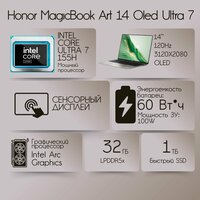 Купить Ноутбук Honor MagicBook Art 14, Intel Core Ultra 7 155H, Intel Arc Graphics, RAM 32 GB, SSD 1 TB, серый с доставкой по всей России.