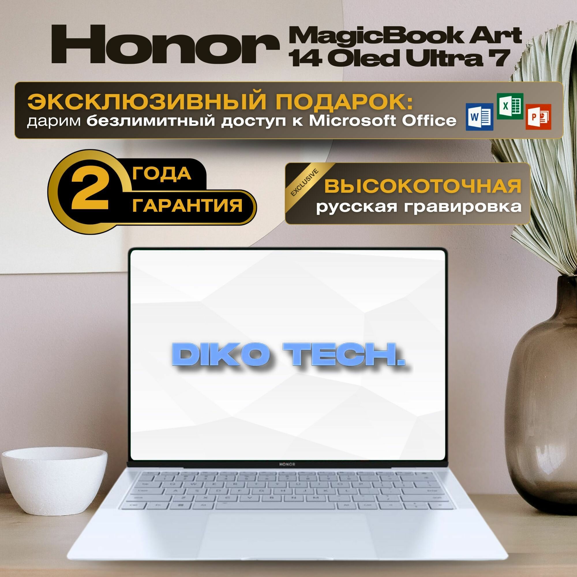 Ноутбук Honor MagicBook Art 14, Intel Core Ultra 7 155H, Intel Arc Graphics, RAM 32 GB SSD 2048 GB, белый: сравнение цен, характеристики, фото, актуальное наличие и цены.