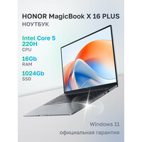 Купить Ноутбук HONOR MagicBook X16 Plus Intel Core 5 220H, 16ГБ, 1024ГБ, Intel Graphics, 16″ 1920×1200 120Гц IPS, Windows 11 Home (5301ALVV) с доставкой по всей России.