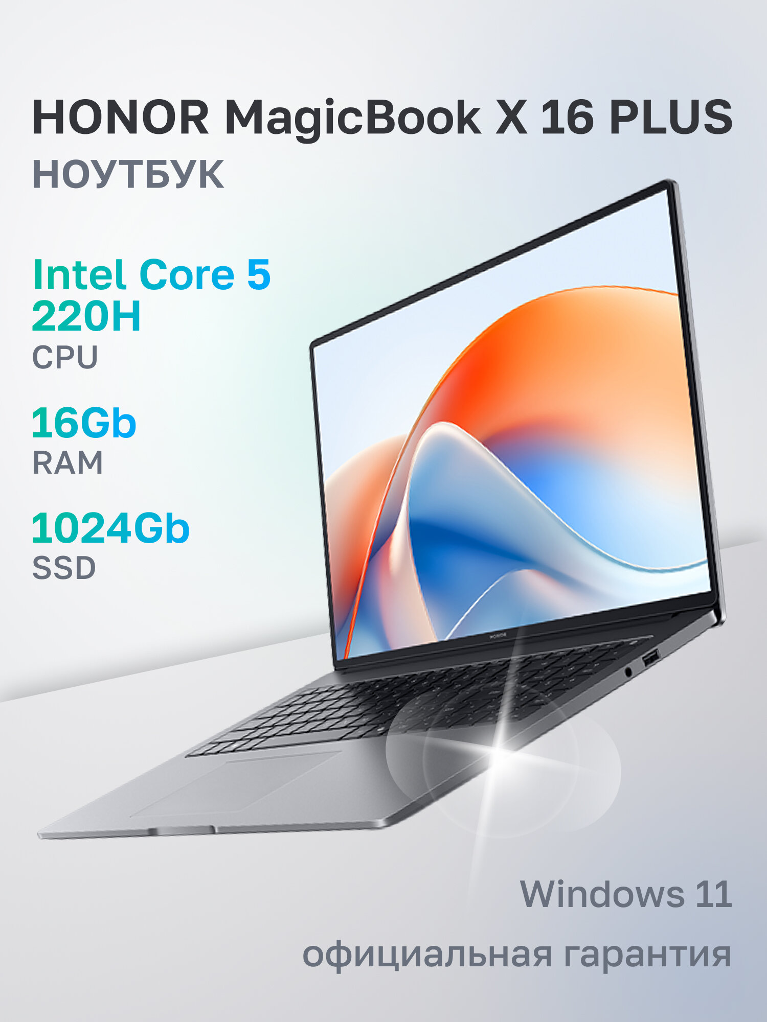 Ноутбук HONOR MagicBook X16 Plus Intel Core 5 220H, 16ГБ, 1024ГБ, Intel Graphics, 16″ 1920×1200 120Гц IPS, Windows 11 Home (5301ALVV): сравнение цен, характеристики, фото, актуальное наличие и цены.