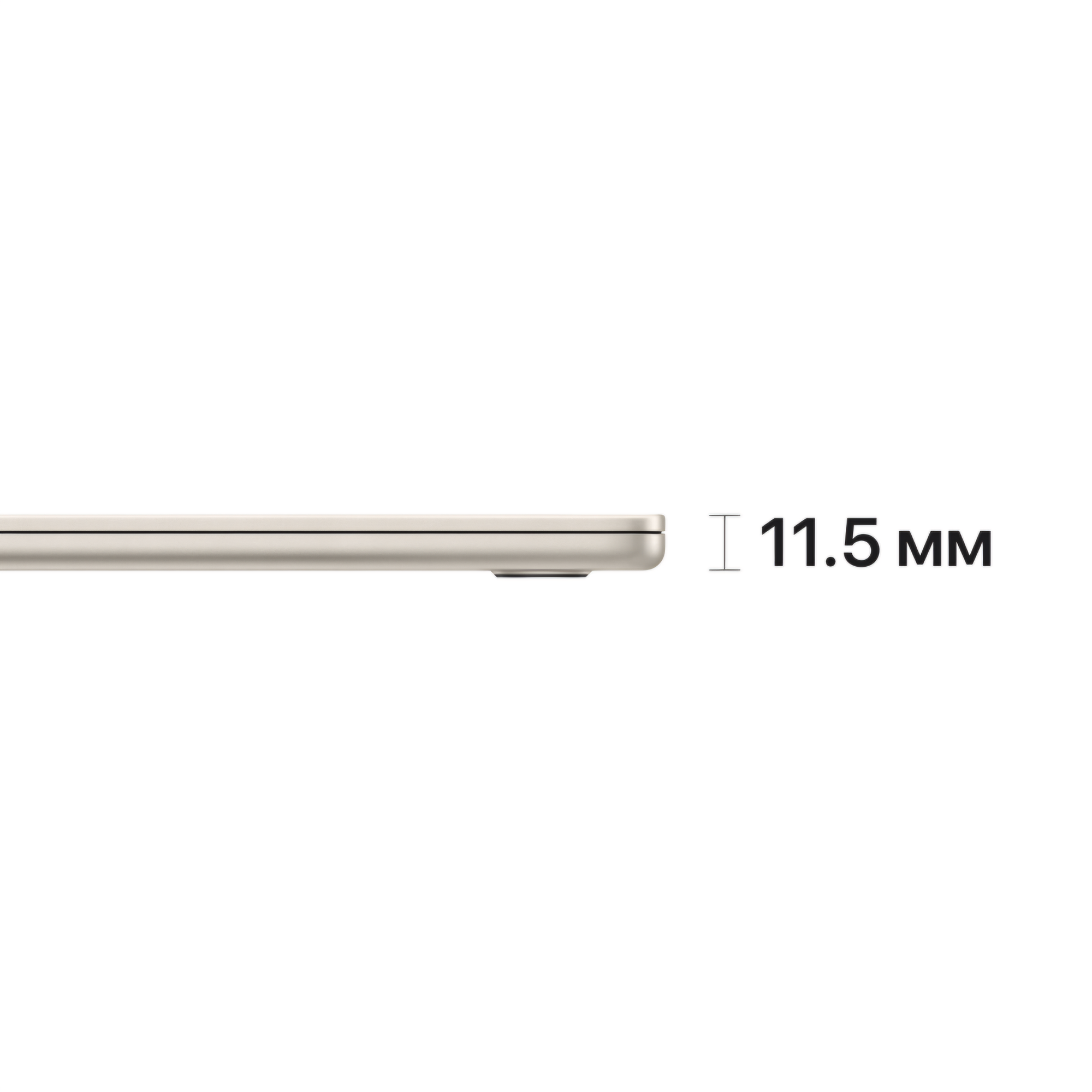 Одно из главных преимуществ MacBook Air M2 - это его компактность и портативность. С его тонким и легким корпусом из алюминия, толщиной всего 11.5 мм и весом 1.51 кг, вы можете брать его с собой куда угодно. Благодаря аккумулятору емкостью 66.5 Вт*ч вы сможете работать до 18 часов без подзарядки, что делает его идеальным выбором для путешествий и длительных рабочих сессий.