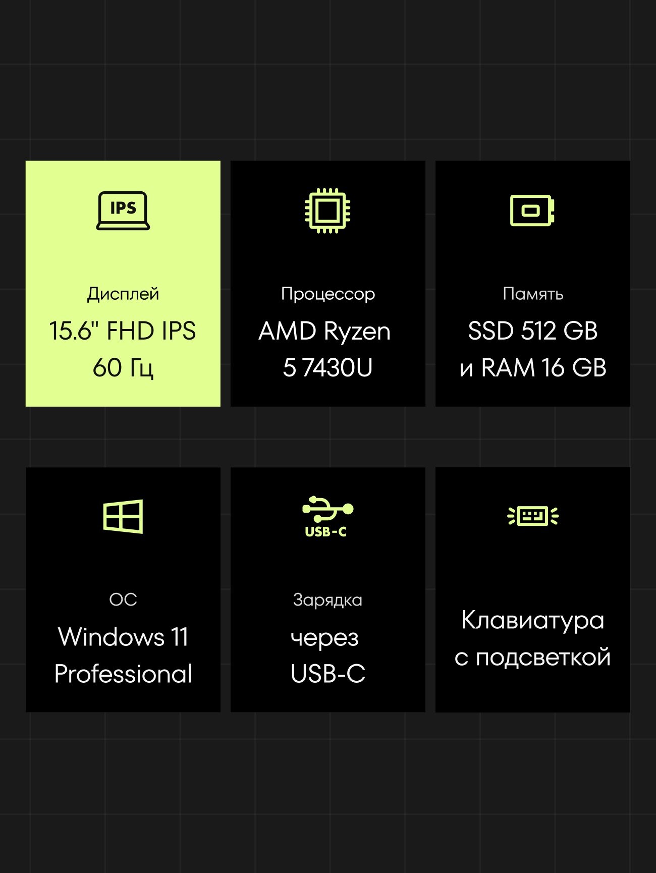 Купить Ноутбук Machcreator One R5 15.6″ FHD IPS, AMD Ryzen 5 7430U, 16 ГБ, SSD 512 ГБ, Windows 11 Pro, (JJ00GB00GRU) с доставкой по всей России.