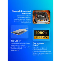 Раскладка: Русская клавиатура; Диагональ экрана: 15.6"; Максимальная частота обновления: 60Hz; Разрешение экрана: 1920x1080; Поверхность экрана: матовая; Тип матрицы экрана: IPS; Производитель процессора: AMD; Серия процессора: AMD Ryzen 7; Модель процессора: 5825U; Тактовая частота процессора: 2.0 ГГц; Тактовая частота процессора вTurbo Boost: 4,5; Количество физических ядер процессора: 8; Оперативная память: 16Gb; Тип памяти: DDR4; Частота шины памяти: 3200; Жёсткий диск SSD: SSD 512 Gb; Интерфейс жесткого диска: M.2; Скорость вращения шпинделя HDD: нет; Тип видеокарты: встроенная; Графический процессор: AMD Radeon Graphics; Оптический привод: noODD; Беспроводная связь: WiFi (802.11 b/g/n/ac/ax), Bluetooth 5.2; Стандарт Wi-Fi: 802.11ac, 802.11b, 802.11g, 802.11n, 802.11ax; Bluetooth: есть; Проводной сетевой адаптер: 10/100/1000 Мбит/сек; Камера WEB: есть; Шторка для веб-камеры: нет; Предустановленная ОС: DOS; Питание: Li-Pol; Емкость аккумулятора: -; Подсветка клавиатуры: есть; Порты и разъемы: RJ-45, HDMI, Card Reader, Аудио вход/выход (комбинированный разъём), 1x USB 3.2 Gen 1 Type-C, 2x USB 3.2 Gen1; Количество интерфейсов USB 3.0: 2; Интерфейс USB 3.1 Type-C: есть; Выход HDMI: есть; Размеры: 359 x 20 x 237 мм; Вес: 1,65; Цвет: серебристый; Цвет по англ: Silver