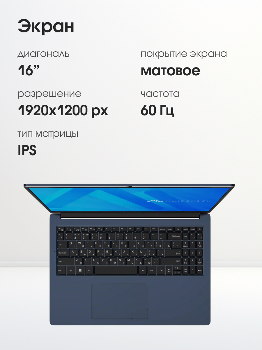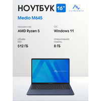 Купить 16″ Ноутбук MAIBENBEN Medio M645, IPS 60 Гц, AMD Ryzen 5, 8/512 ГБ, Win 11 Home, темно-синий с доставкой по всей России.