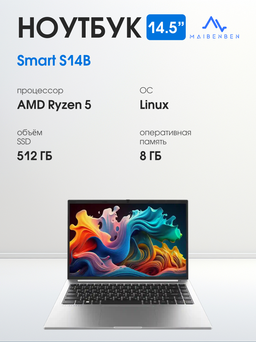 14.5″ Ноутбук MAIBENBEN Smart S14B, IPS 120 Гц, AMD Ryzen 5, 8/512 ГБ, Linux, серебристый: сравнение цен, характеристики, фото, актуальное наличие и цены.