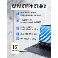 Купить Ноутбук для работы и учебы 16″ Intel N95 (до 3.4 ГГц), RAM 16 ГБ, SSD M.2 1024 Гб, Windows 11 Pro с доставкой по всей России. Ноутбук для работы и учебы 16″ Intel N95 (до 3.4 ГГц), RAM 16 ГБ, SSD M.2 1024 Гб, Windows 11 Pro: сравнение цен, характеристики, фото, актуальное наличие и цены.