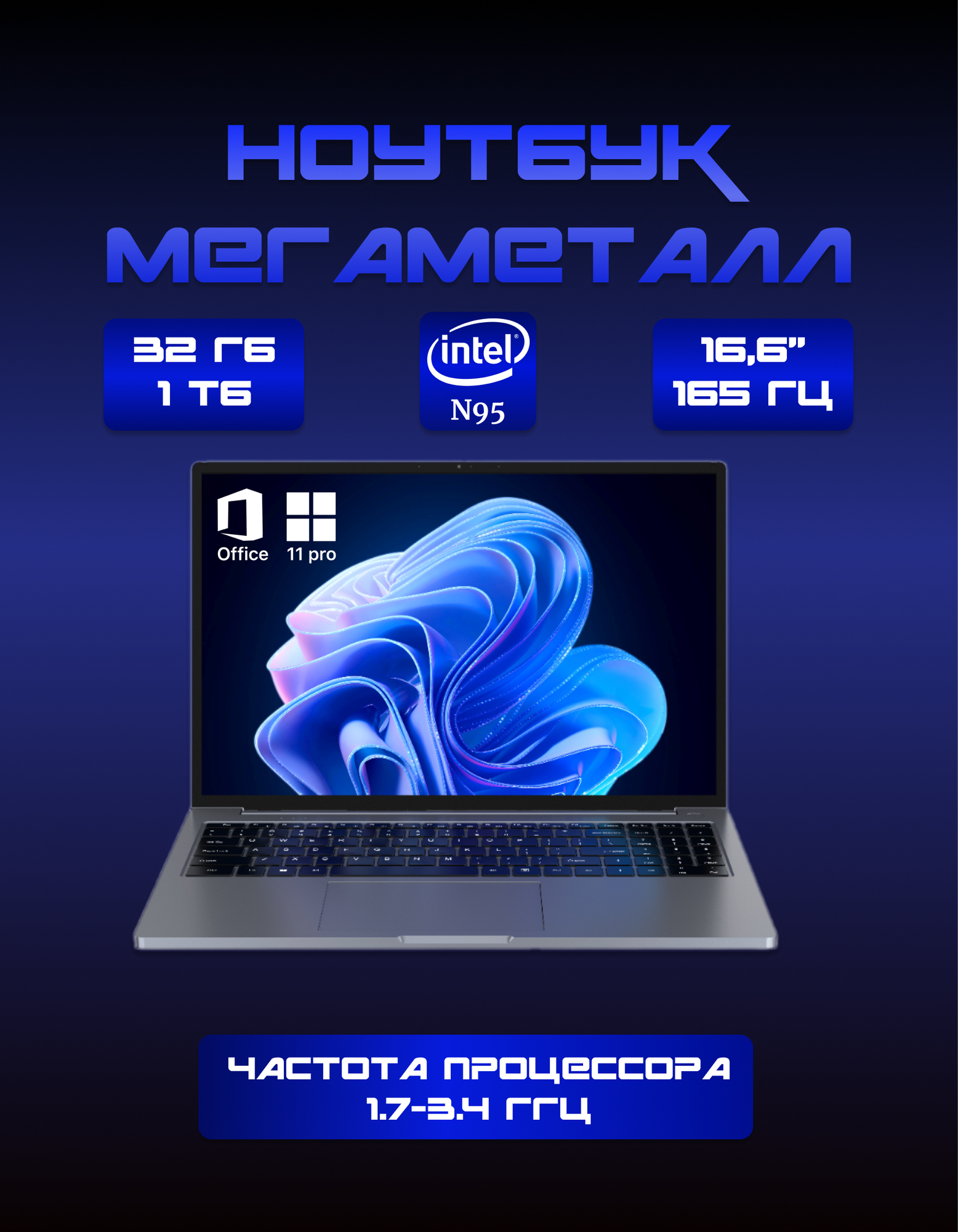 Ноутбук цельнометаллический 16,6″ 2.5к 165Гц, Intel N95 4*3,4ГГц, ram 16 ГБ, SSD 1Tb NVME: сравнение цен, характеристики, фото, актуальное наличие и цены.