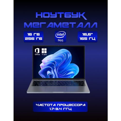Ноутбук цельнометаллический 16,6″ 2.5к 165Гц, Intel N95 4*3,4ГГц, ram 32 ГБ, SSD 256 Gb NVNE: сравнение цен, характеристики, фото, актуальное наличие и цены.