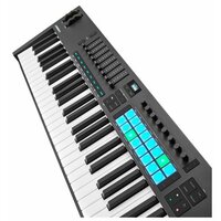 Launchkey 61 MK4 - это мощный DAW-контроллер с премиальной полувзвешенной клавиатурой, восемью continuous-энкодерами, девятью фейдерами и 16 чувствительными к силе нажатия ударными падами для игры на барабанах, инструментах и запуска клипов.