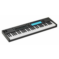 Novation Launchkey 61 MK4 — контроллер с 61 полувзвешенной клавишей с чувствительностью к силе нажатия, с 16 чувствительными к силе нажатия ударными пэдами с полифонической афтертач, 8 вращающимися энкодерами, 9 фейдерами и 8-шаговым секвенсором.
